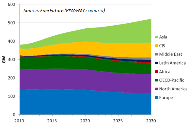 Nevertheless, despite the Fukushima accident, nuclear prospects to satisfy the fast growth rate of electricity demand remain high, notably in Russia and Emerging Asian Economies. By 2030, world nuclear capacities are expected to increase by 37% in a "business-as-usual" case and developing Asia will represent one quarter of the total installed capacity (compared to only 1% in 2010).