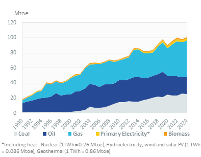 Graph: CONSUMPTION TRENDS BY ENERGY SOURCE (Mtoe)