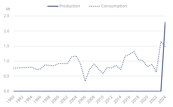 The country started producing crude oil in 2024 (2.3 Mt in 2024); production is expected to exceed 4 Mt in 2025 (100 kb/d). In 2024, Senegal imported 1.5 Mt of crude oil from Nigeria.